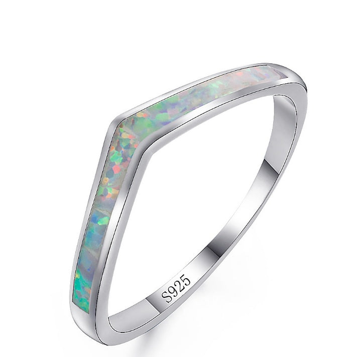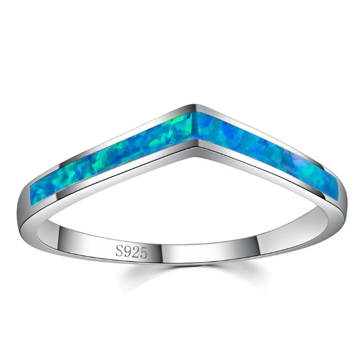 925 Sterling Silver Fashion Jewelry Mystic Ocean Blue White Opal Fire Rings For Women Gifts