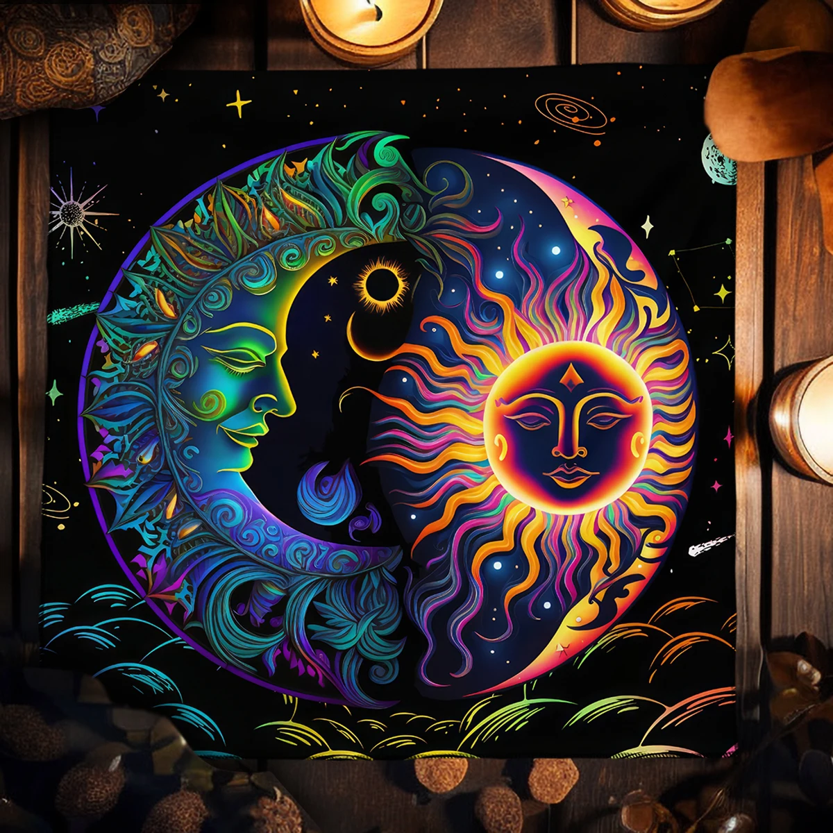 Mystical Colorful Sun and Moon Tarot Card Tablecloth Astrological Divination Altar Cloth Card Game Mat Witchcraft Witchy Decor